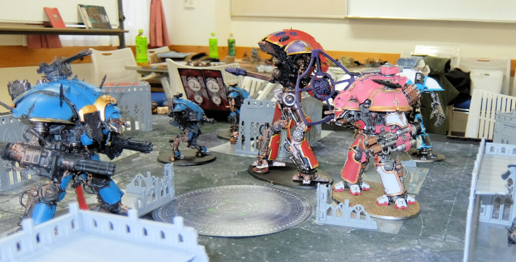 こちらも帝国vs混沌、ナイト編成同士の激突。帝国側はなにやらポップなカラーリングですね(笑)