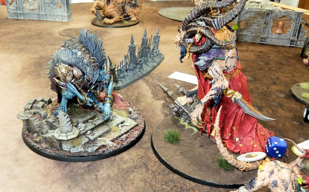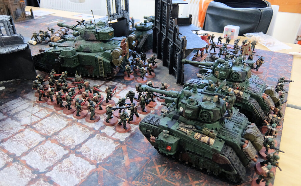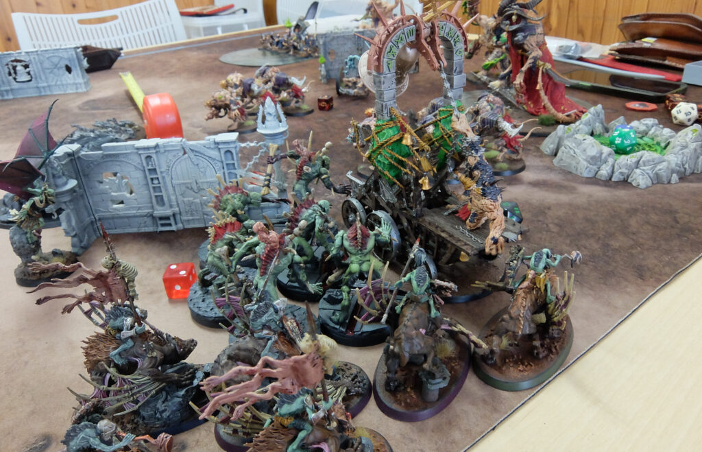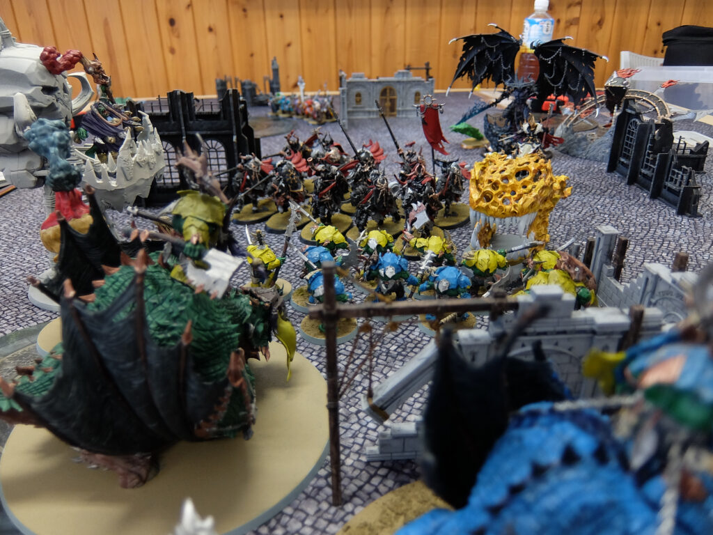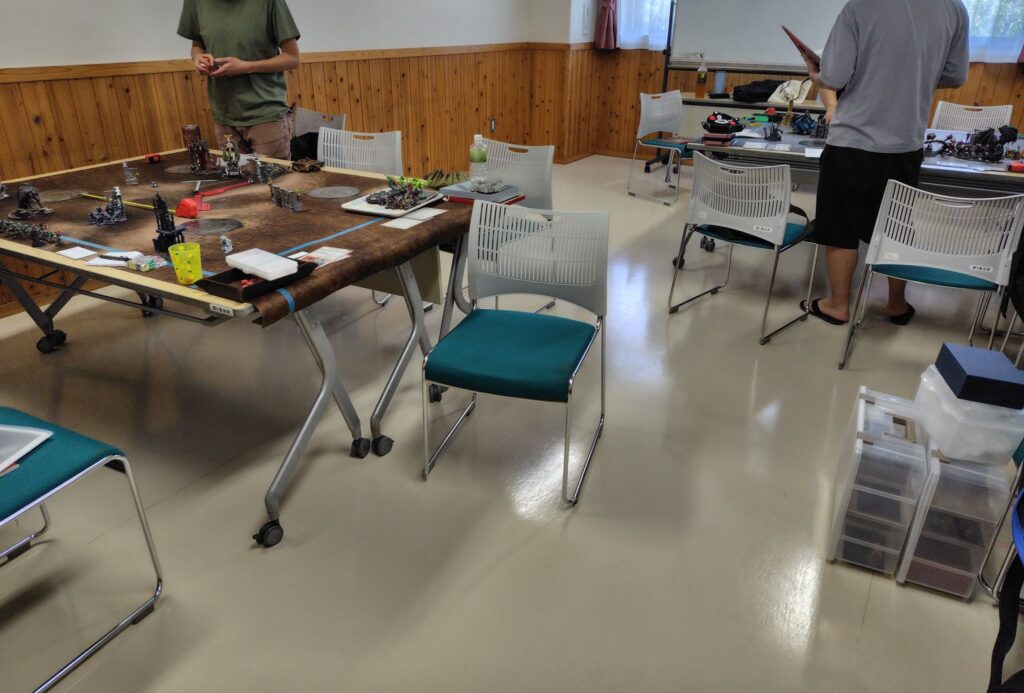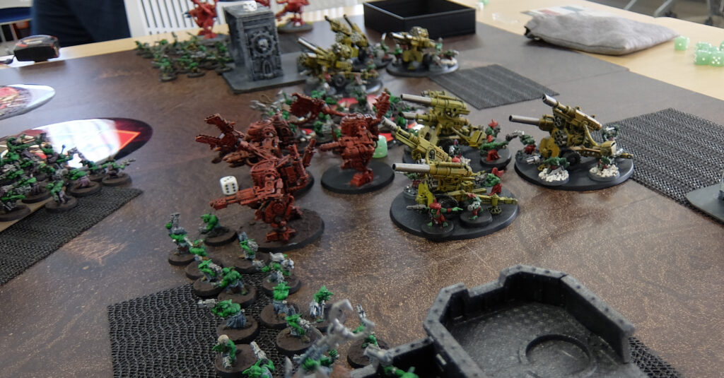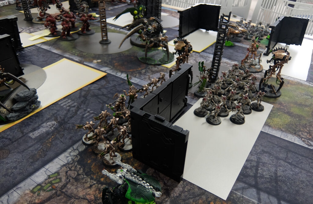 このテーブルは1000pのハーフゲーム。とはいえお互いにモブユニットをてんこ盛り、101体 vs 86体!とても1000pに見えない物量・・・