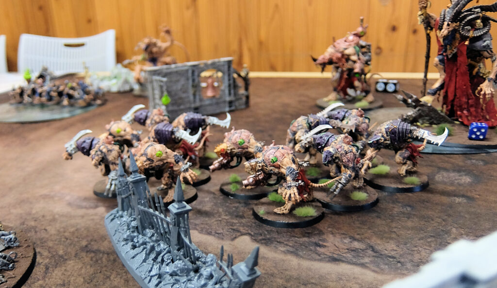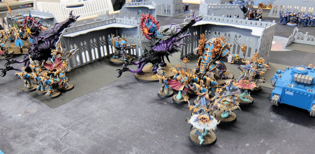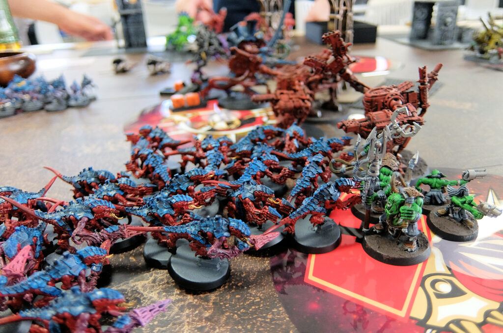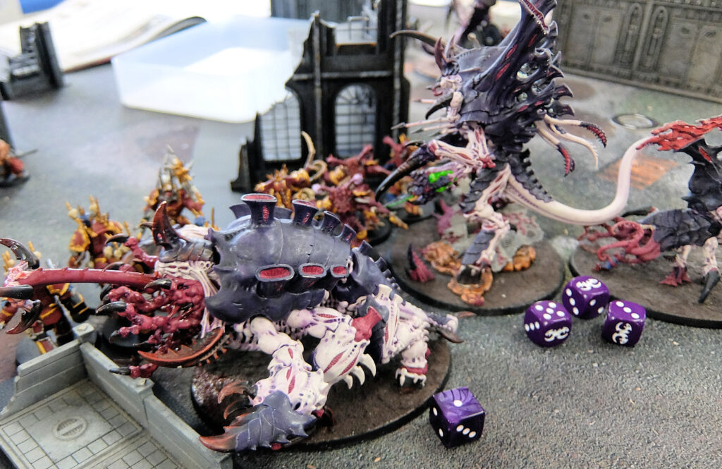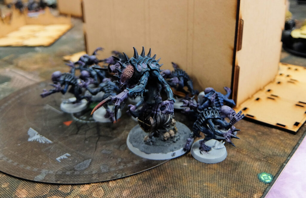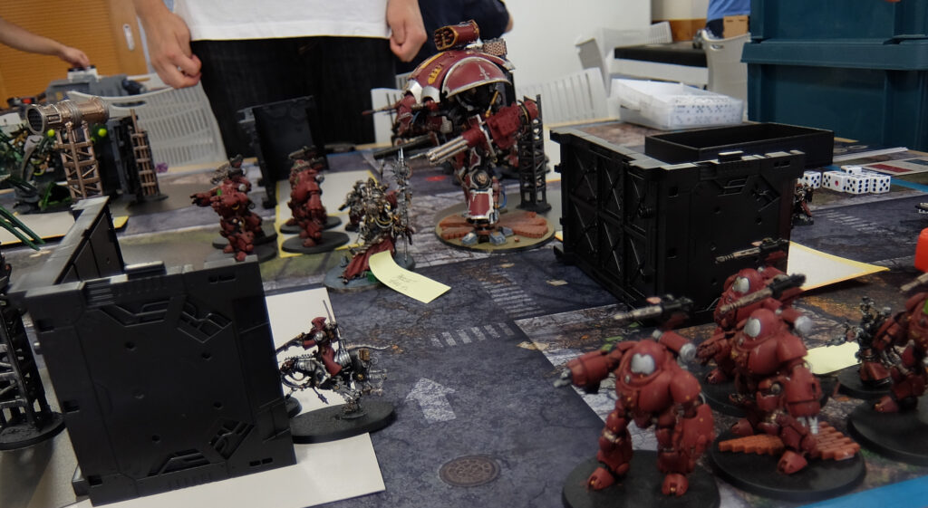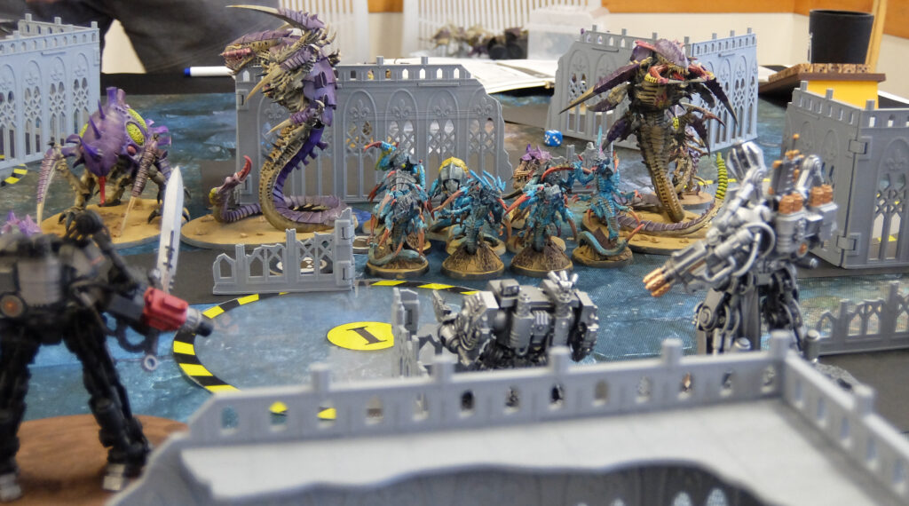 機甲編成のグレイナイトに対しモンスター中心のティラニッドが激突。数で勝るティラニッドが接戦を制して勝利しました。