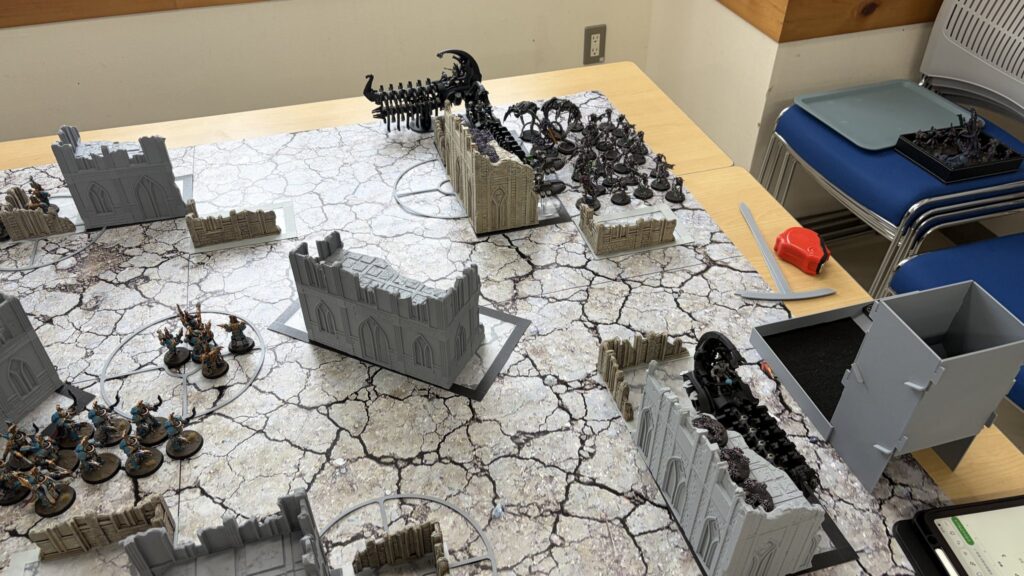 手前のドゥームズデイアークはテレイン内に移動してターミネーターへ射撃により損害を与えてターン終了です。