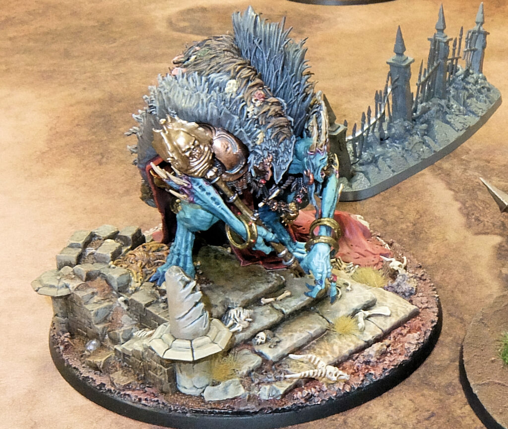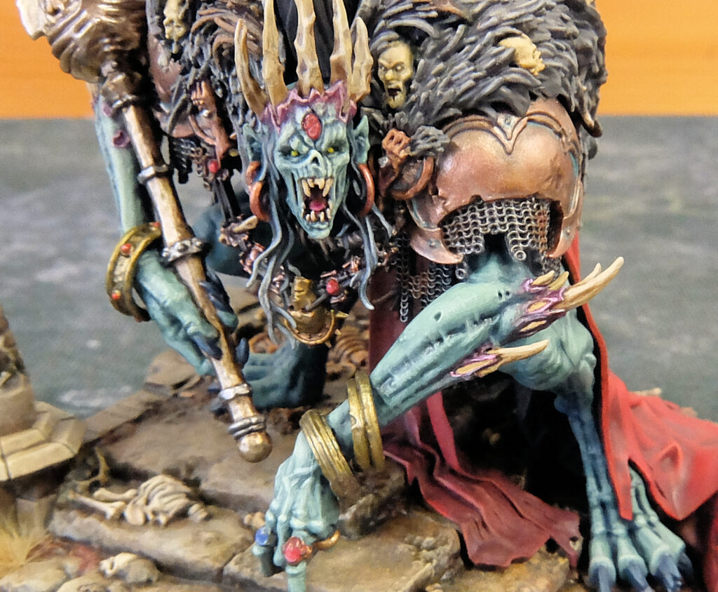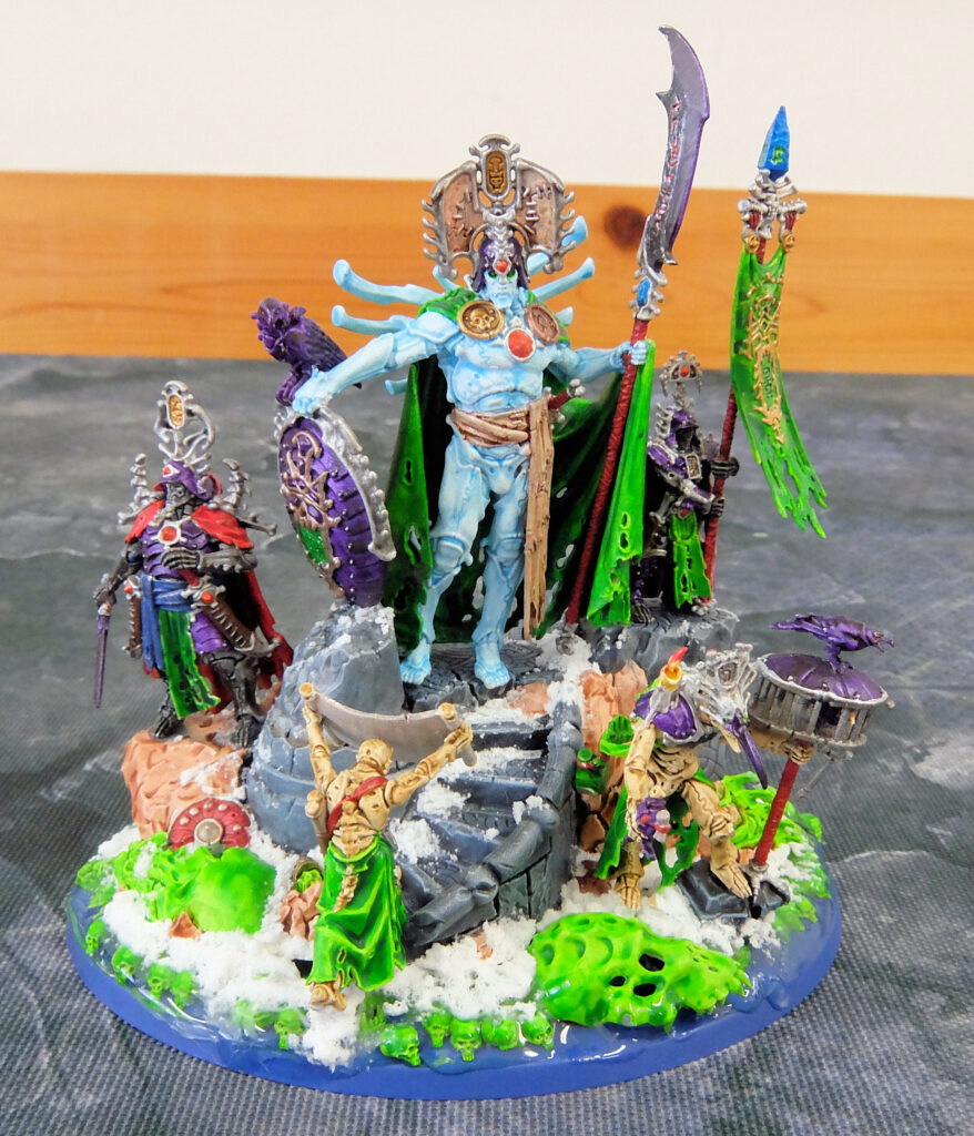 ネクロンのエリートモデルを贅沢にもベース素材として使った作品。岩で高さを出していて迫力があります。
