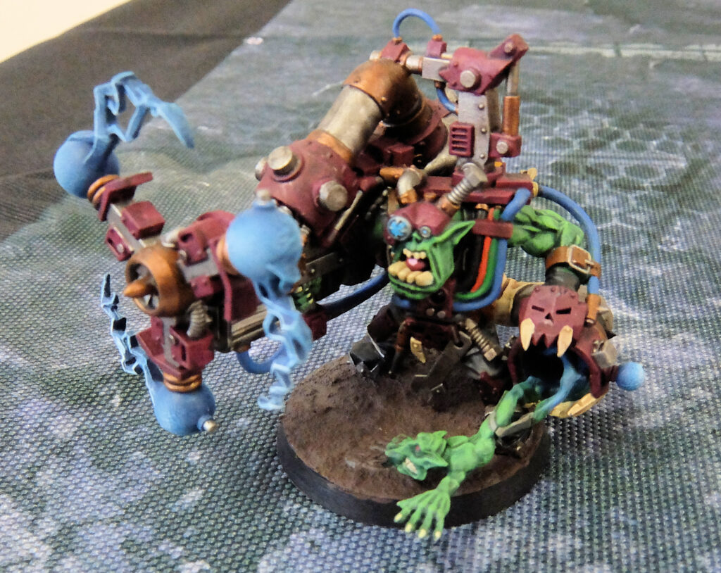 オルクらしいビックリ兵器ショックアタッガンのモデルです。グリーンスキンの滑らかなハイライトが美しいですね。